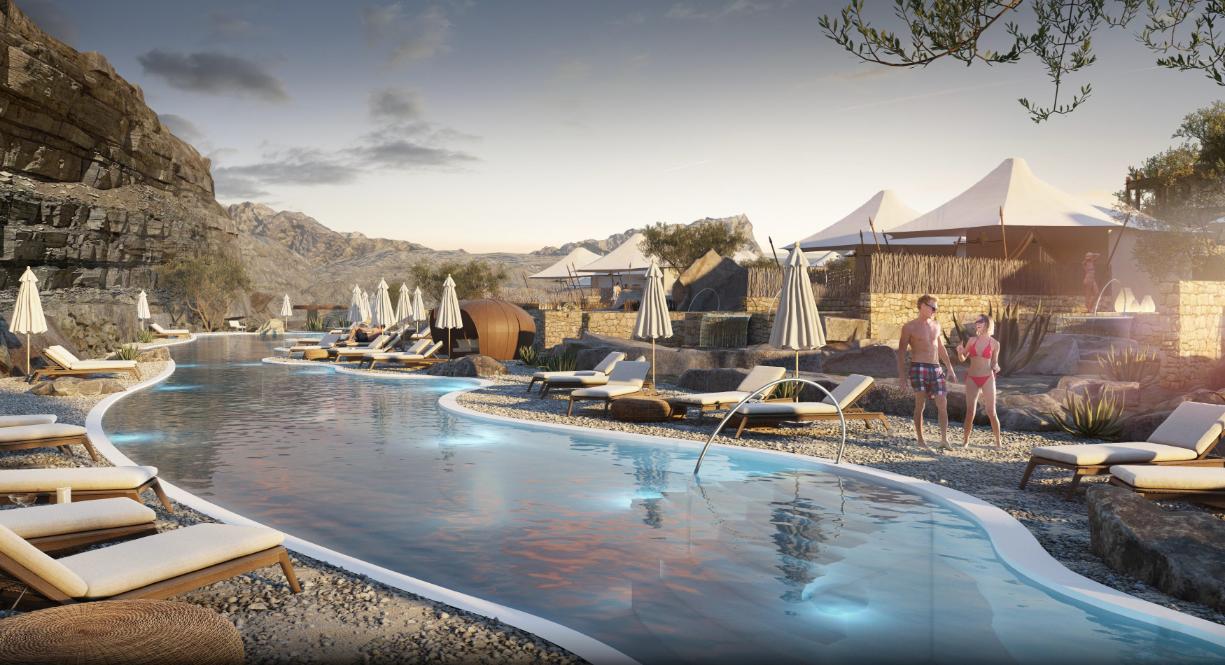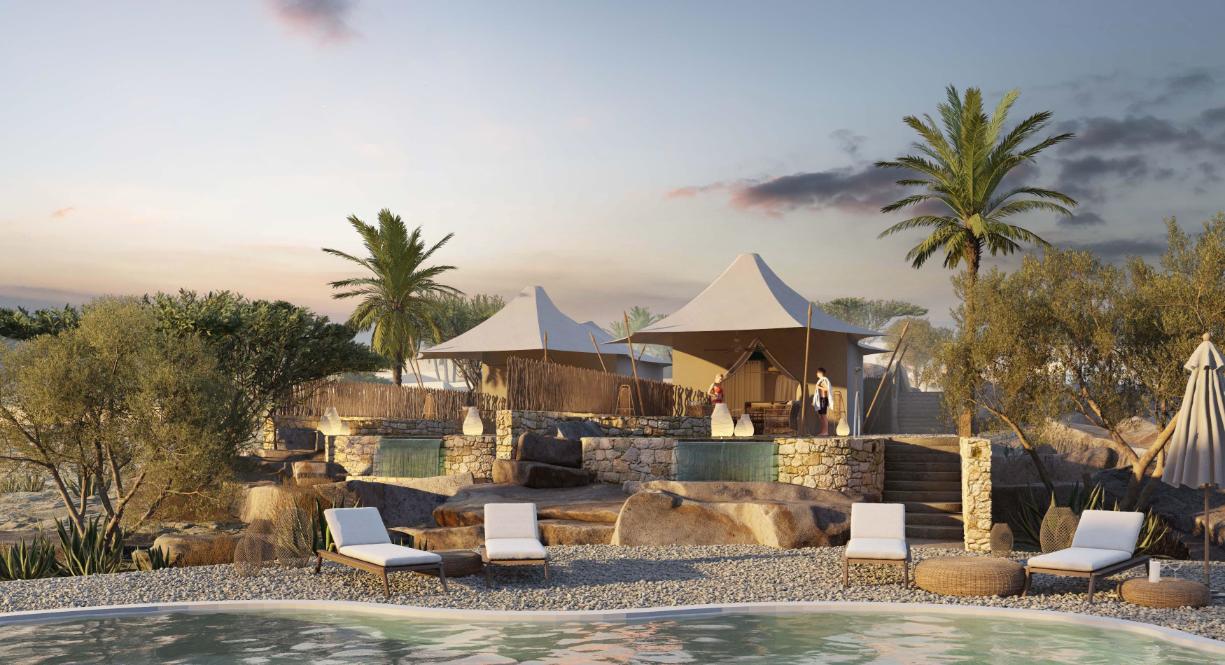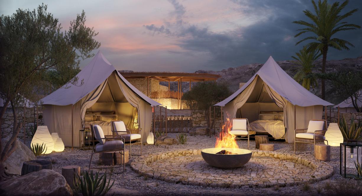מלון גלמפינג יוקרתי הכולל 36 אוהלים/יחידות כולל בריכה לכל אוהל/יחידה ומתחם אוהלים עממי הכוללים 40 אוהלים/יחידות.