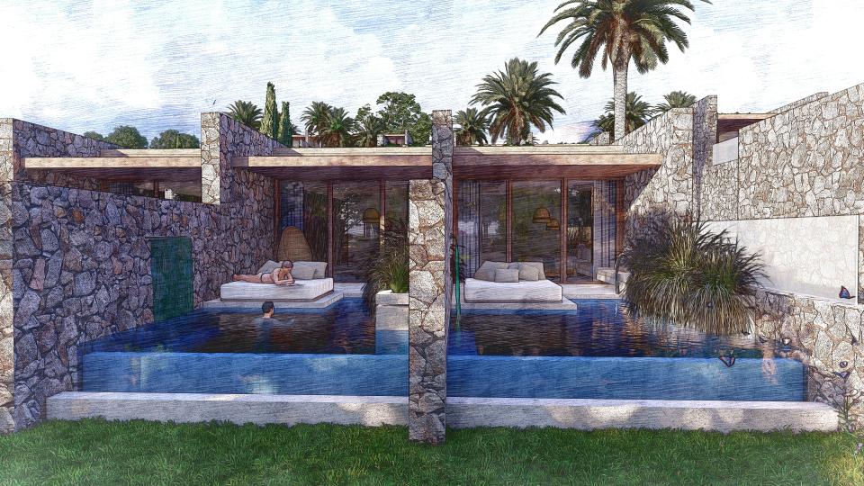 שתי בתי מלון : מלון זוגות ומלון משפחות, 75 סוויטות, ברכה, לובי וקבלה לכל מלון.