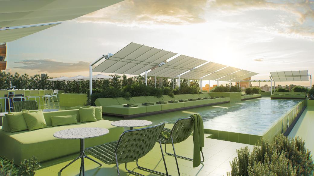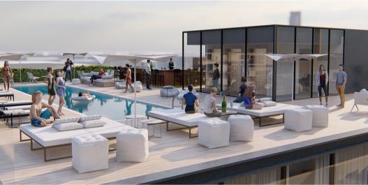 אזורי הסעדה, קבלה ולובי, ברכת שחייה ובר בגג המלון.